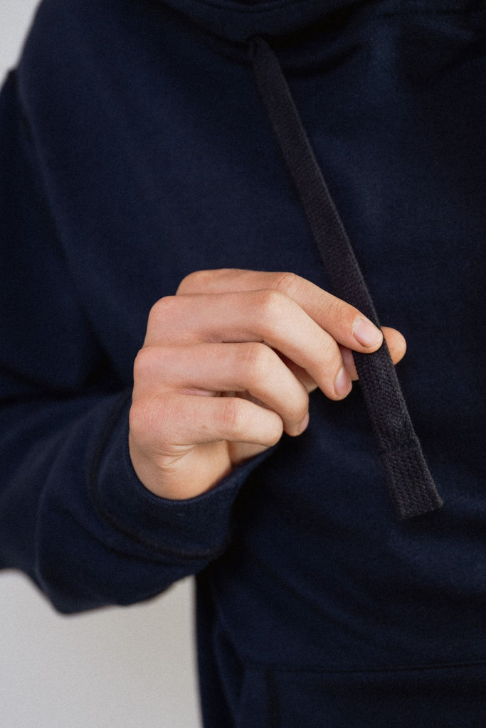 De ultrazachte hoodie van ademende biokatoen biedt directe verlichting voor gevoelige huid. Hij omhult je met lichtheid, warmte en rust. Het subtiele friemelkoord geeft stille, aardende tastprikkels — ideaal op momenten waarop je lichaam iets nodig heeft terwijl je hoofd tot rust komt.