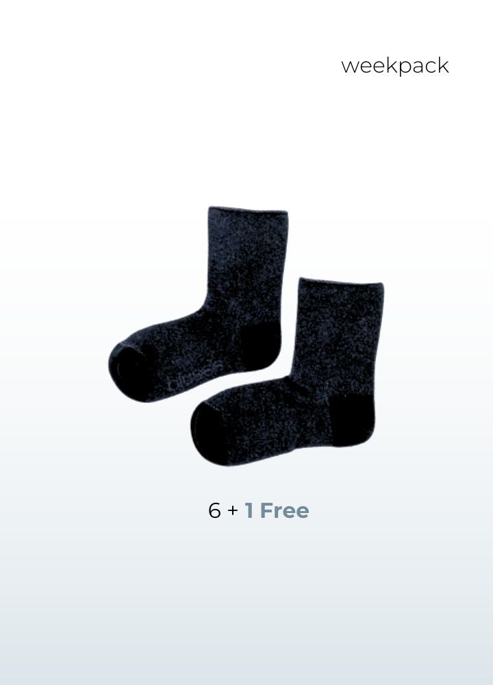 From busy mornings to long workdays to slow Sundays—true comfort makes every moment better. Scratchy seams or tight cuffs? Not here. Our bamboo blend socks are luxuriously soft, temperature-regulating, and kind to sensitive skin. Easy to pull on, non-restrictive at the ankle, and designed for all-day wear. With the 6 + 1 free pack, you’re set for seven days of smooth, irritation-free comfort.