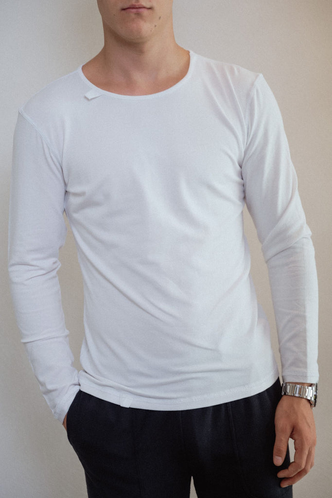 This t-shirt will become your wardrobe staple, as it is crafted with all the design elements to ensure soft comfort and style in one. It is cut from special organic cotton fabric that boasts a regular fit with a crew neck and long sleeves, as well as no seams or labels.